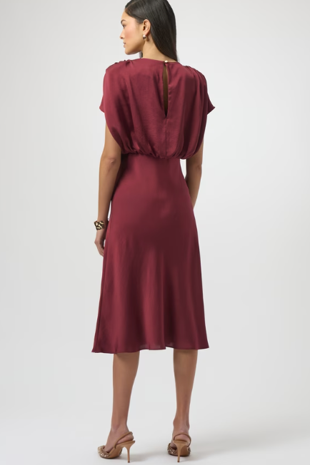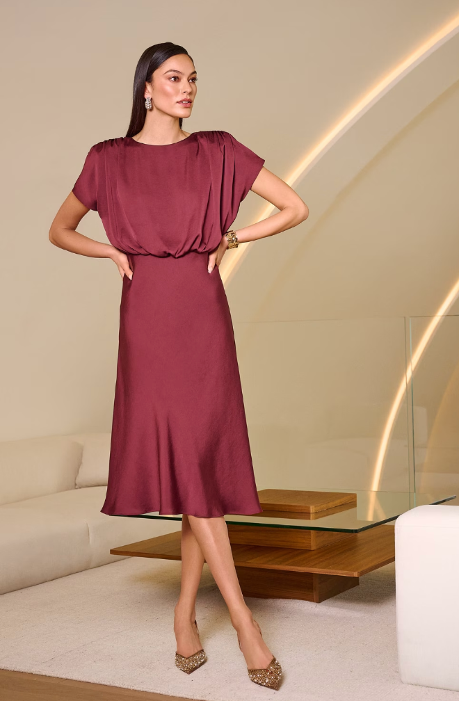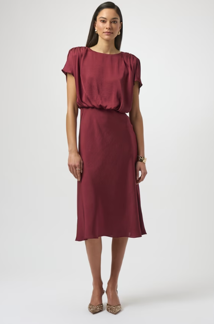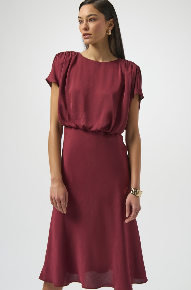 Step into sophistication with the Joseph Ribkoff midi A-line dress, perfect for both formal and semi-formal occasions. This elegant piece features a flattering round-neck and stylish puff short-sleeves. The belted and ruched details add a touch of femininity, ensuring you look polished and poised. Ideal for making a statement, this dress effortlessly combines timeless style with modern elegance.