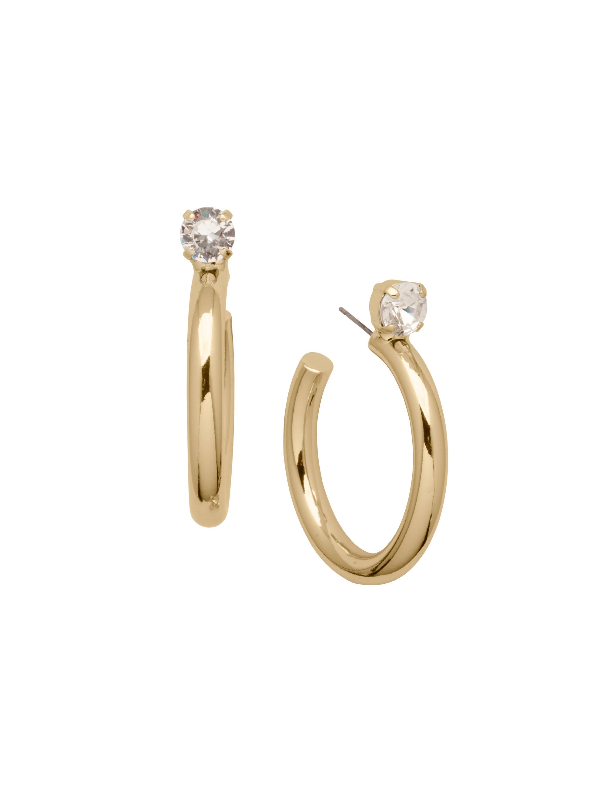 Elevate your look with the Keeley Studded Hoop Earrings, a dazzling accessory that commands attention. Featuring: a sparkling crystal stud embellishment, a sleek durable metal hoop, and a secure post-back closure. From Sorrelli's Crystal collection in our Bright Gold-tone finish. (SKU: EFP26BGCRY)