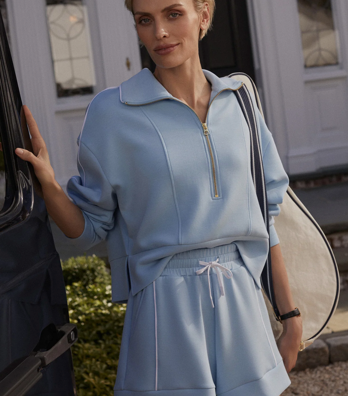 A casual wardrobe staple, it's designed with dropped shoulders, front panelling, and contrast piping for a retro-sporty look. Perfect for effortless styling post-match or during leisurely outings.