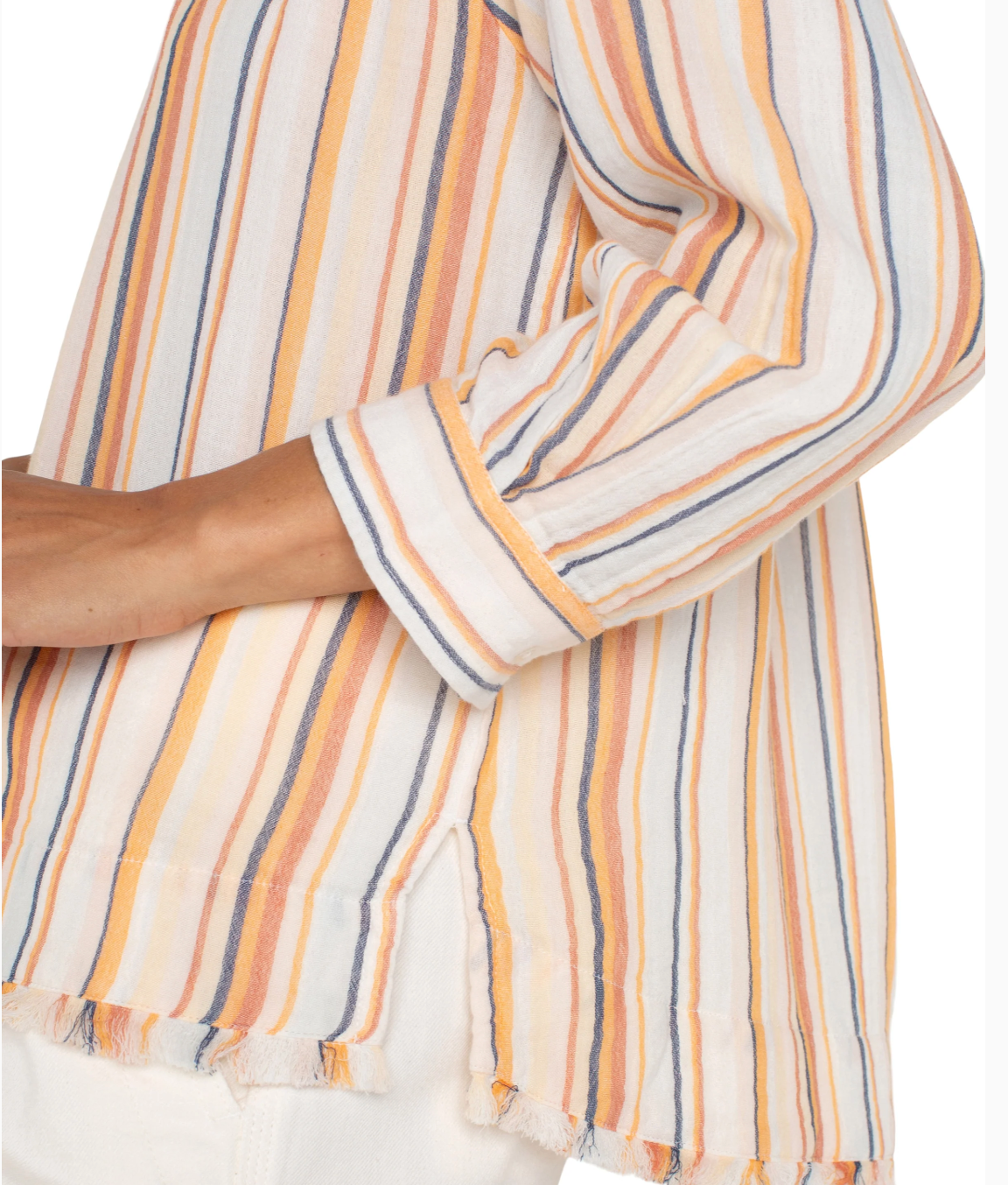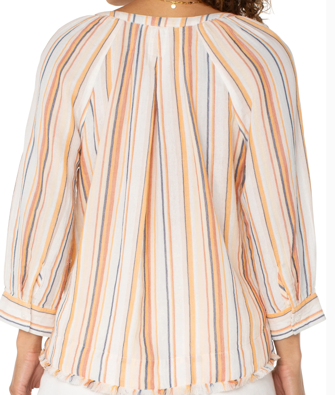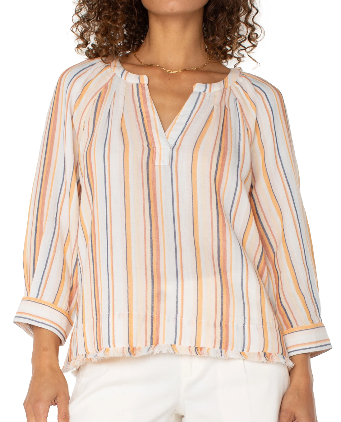 Liverpool 3/4 Sleeve Raglan Top with Fray Hem