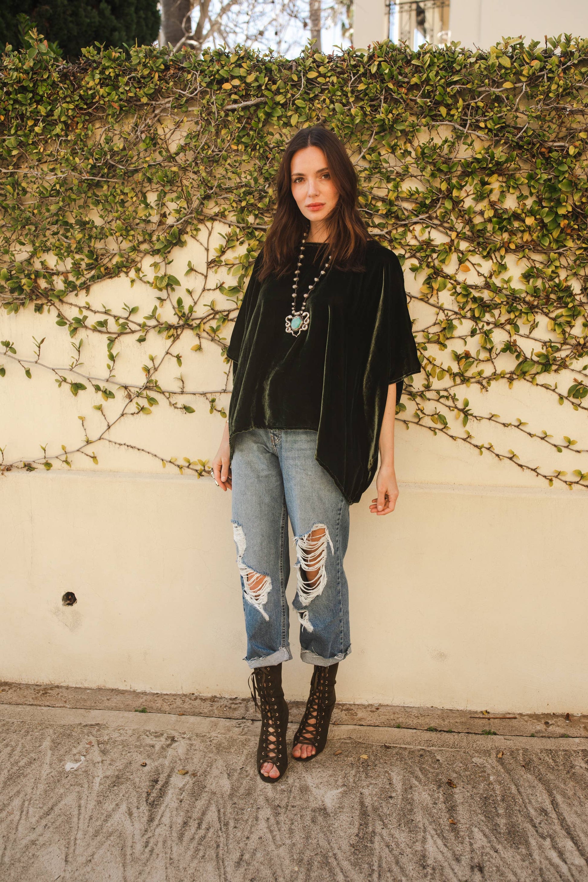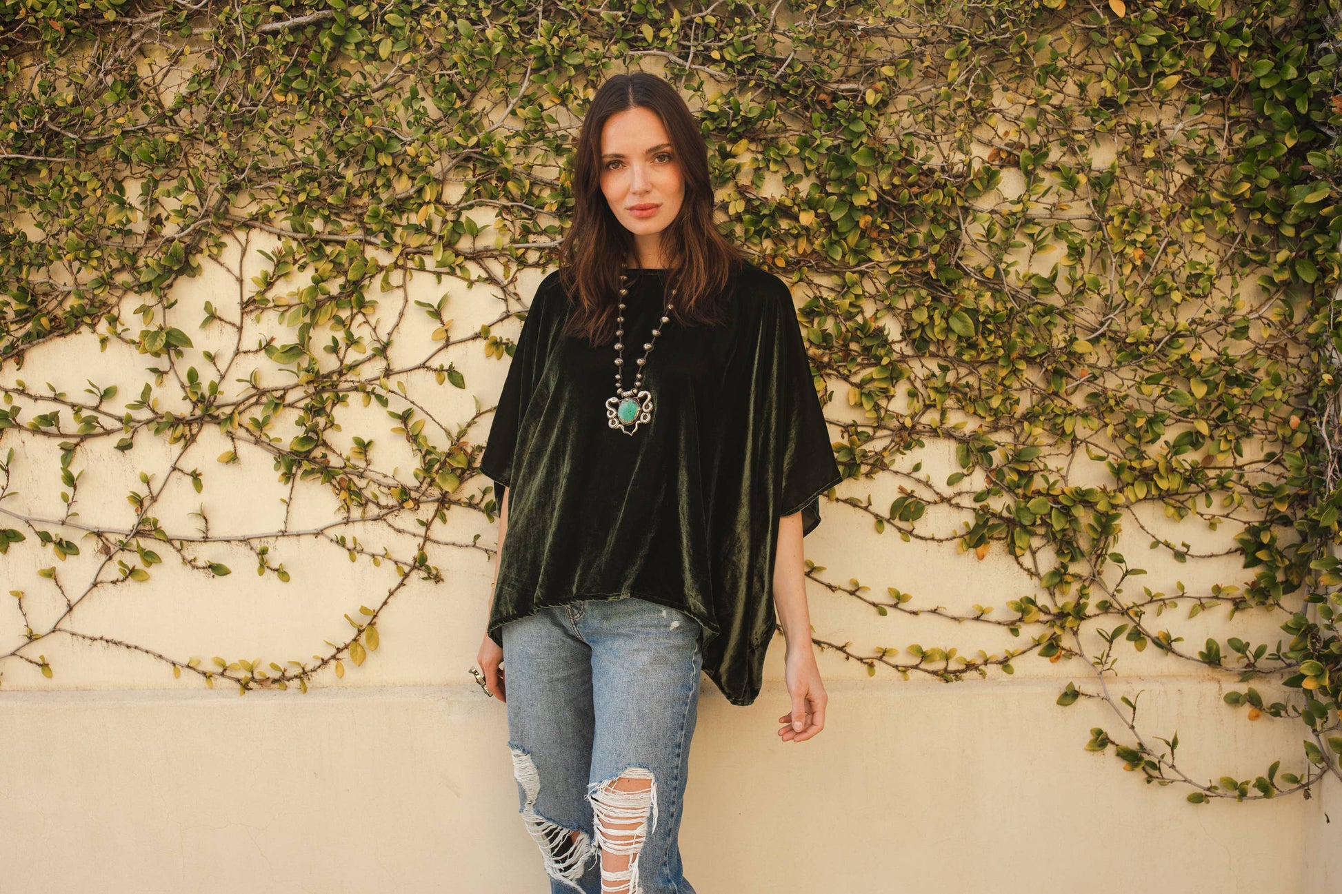 This bohemian-inspired scarf top is the perfect piece for a casual look with your favorite jeans, or an elevated artistic outfit with pencil skirt & copious jewelry. Made in California with deadstock silk velvet, and lots of love.