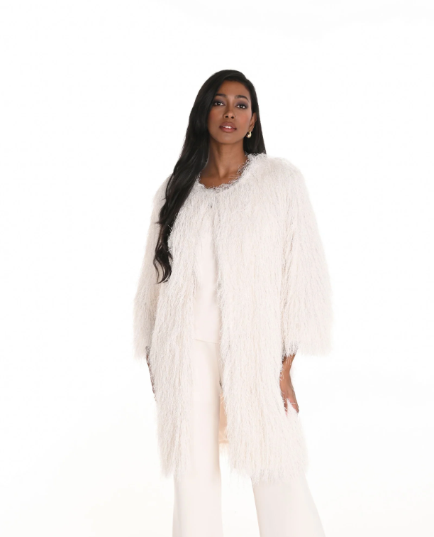 Elevate your wardrobe with the Frank Lyman Vanilla 3/4 Sleeve Textured Vest, Style 259733. Featuring a sophisticated feather-textured fabric and an open-front design, this vest offers a refined layering option that combines comfort with style. The 3/4 sleeves provide versatility for transitional seasons, making it an ideal piece for both professional and casual settings. Its neutral vanilla tone ensures effortless pairing with a variety of outfits, enhancing your ensemble with subtle elegance.