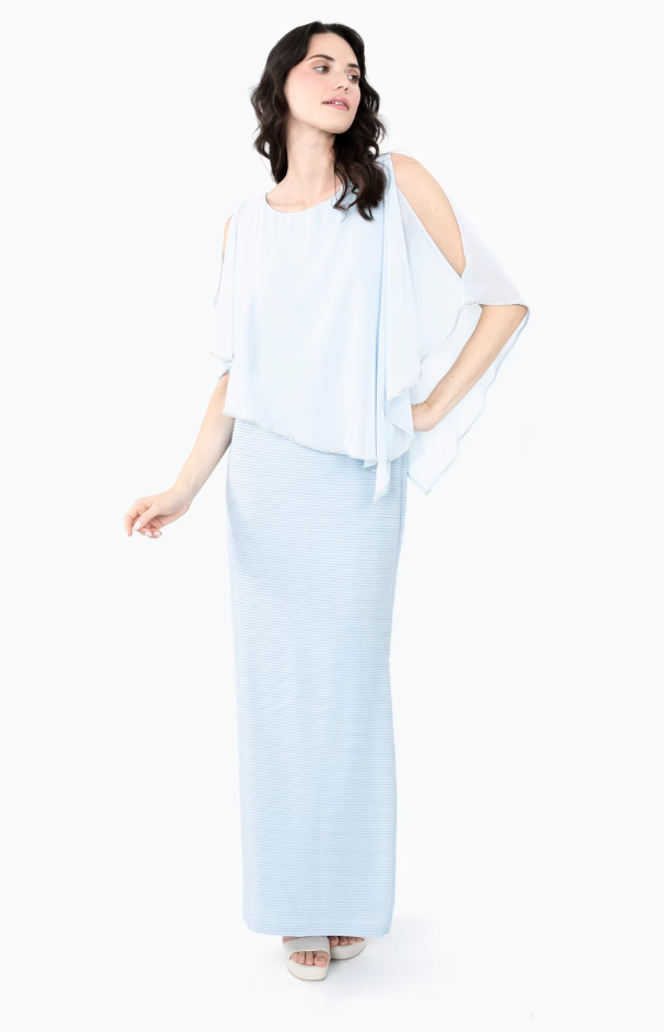 Elevate your style with the Frank Lyman floor-length sheath dress. Featuring a flattering boat-neck neckline and a feminine flutter-sleeve, this dress is perfect for formal and semi-formal occasions. The beaded trim adds a touch of elegance, making it a timeless and sophisticated choice for any event.