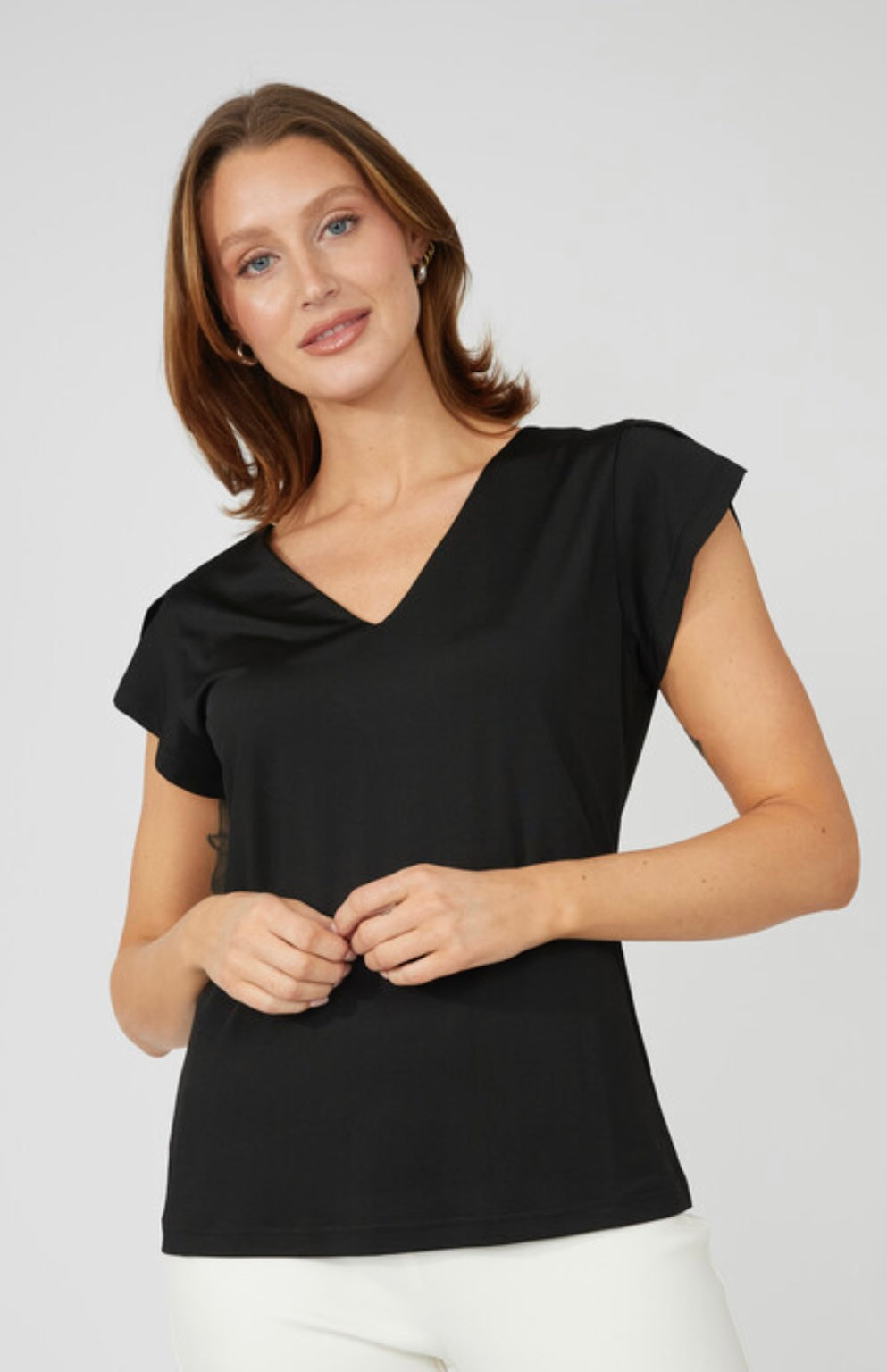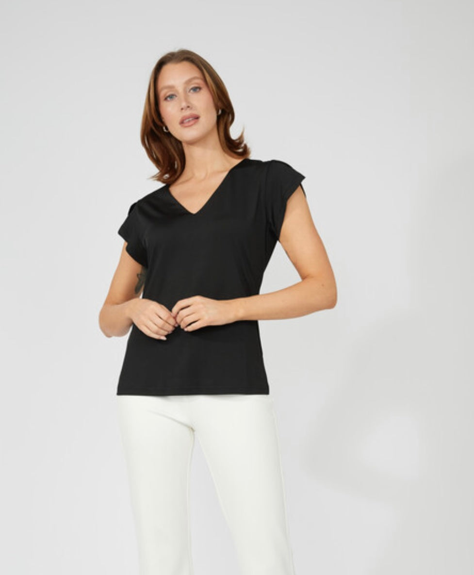 Introducing the Frank Lyman pullover, a versatile addition to your wardrobe. Designed with a regular fit and hip-length cut, this chic piece features a flattering v-neck and short sleeves. Perfect for casual outings, office wear, or a night out, its plain pattern and straight sleeves offer a timeless look. Embrace effortless style with this must-have garment.