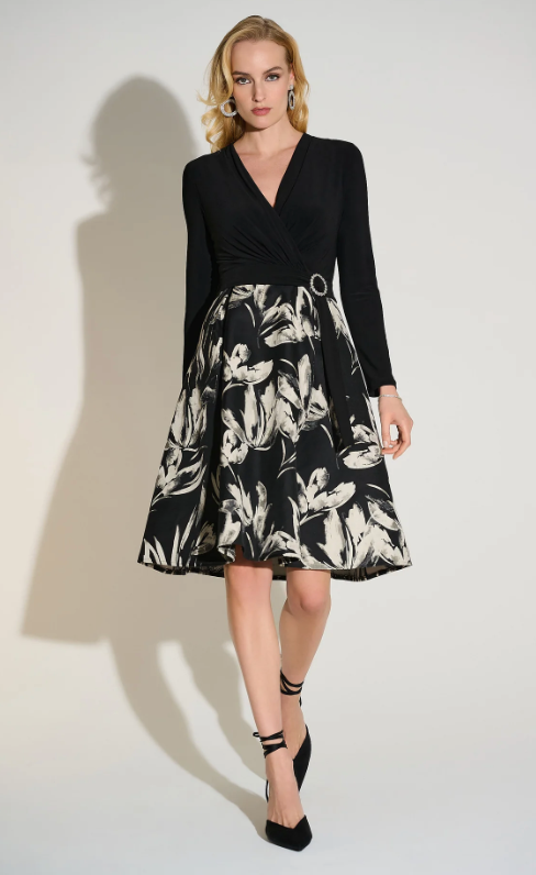 Joseph Ribkoff Floral V-Neck Wrap Dress