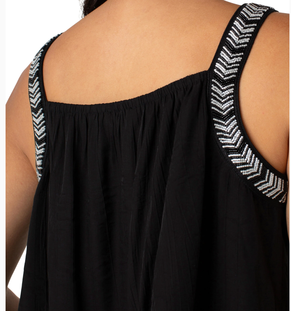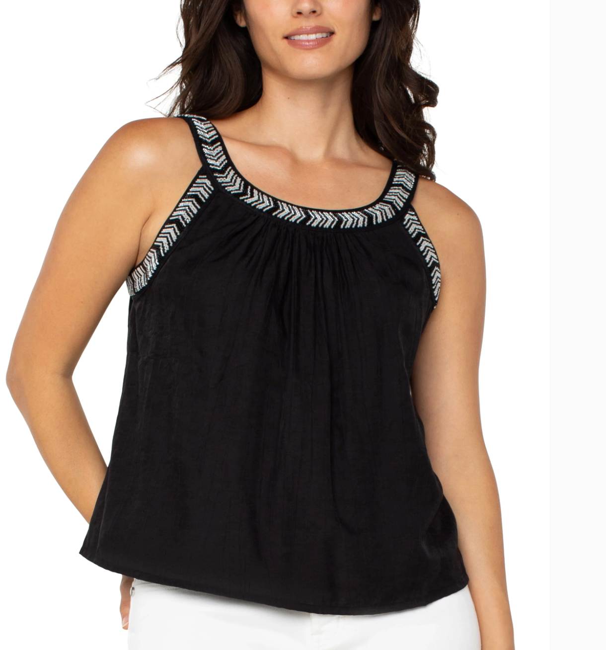 Elevate your wardrobe with this stylish sleeveless tank top. Adorned with intricate beadwork in a chevron pattern, it complements both denim and trousers effortlessly, making it an essential addition to your collection.