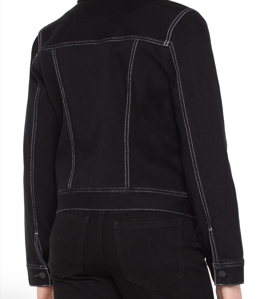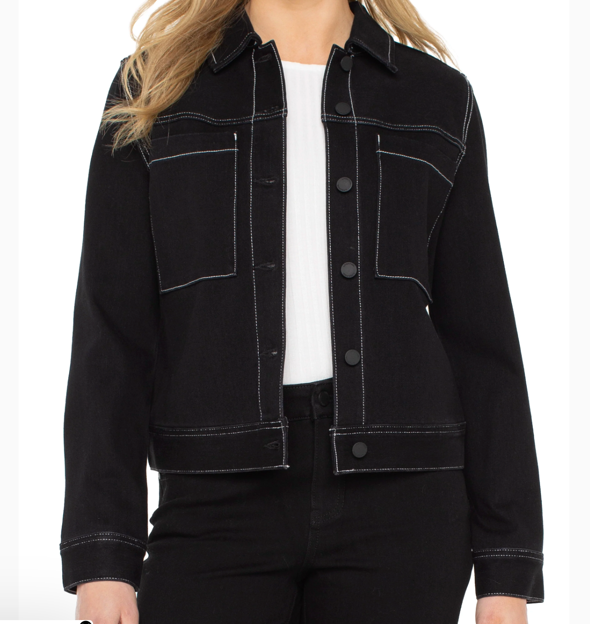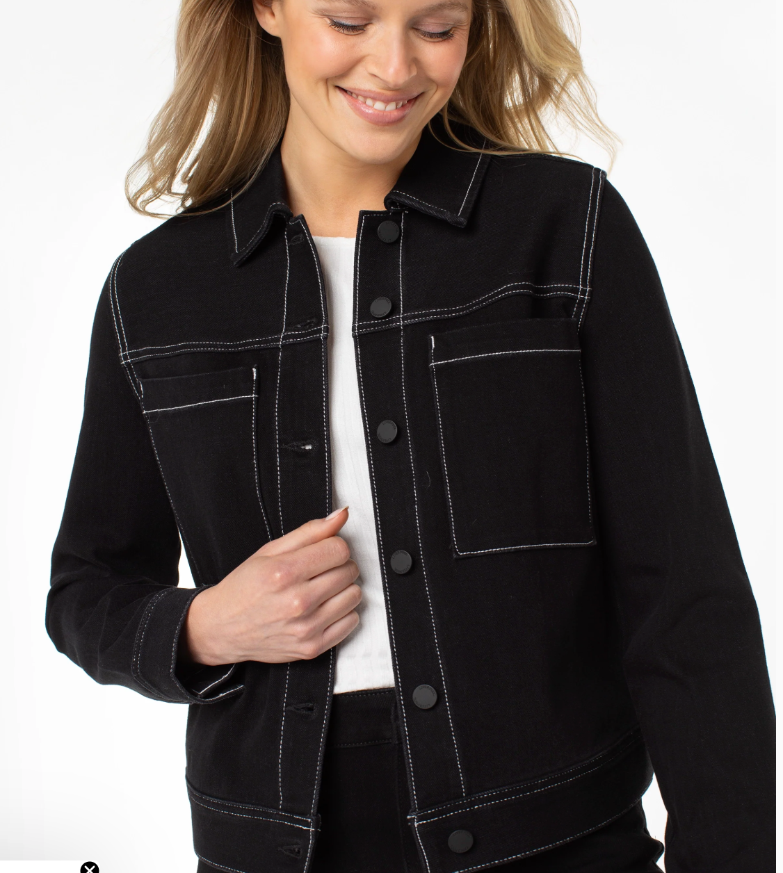 The fashionable jacket you need! This unique item features contrast stitching and large front patch pockets. Perfect with denim or make it a chic all in one set with the matching shorts!