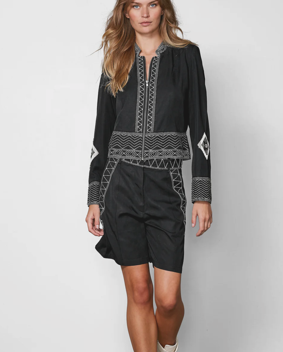 Style the shorts with the matching jacket for a coordinated set, or choose a simple top for a more casual look.
