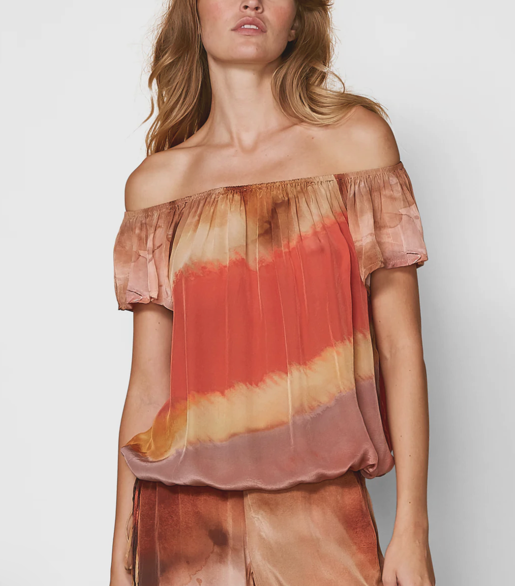 Style the top with the matching pants for a coordinated and colorful set that's perfect for sunny days.