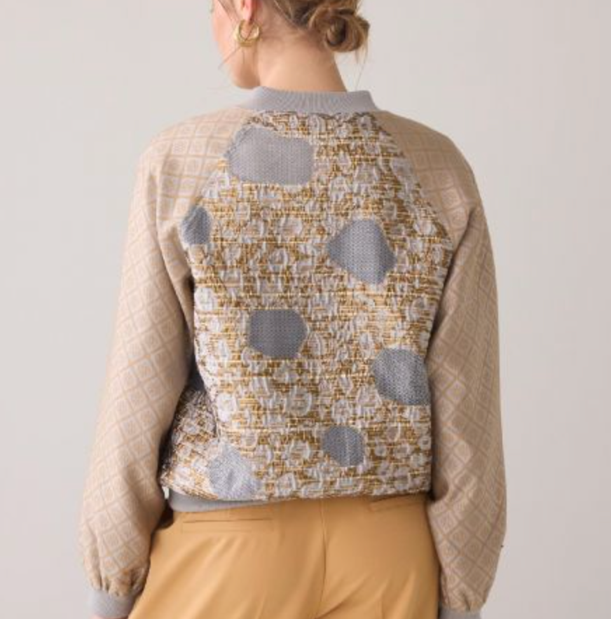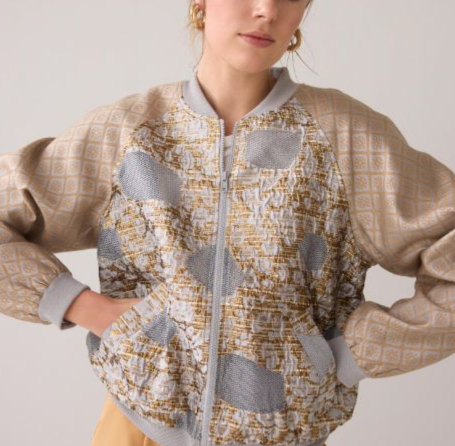 Give your outfit a stylish twist with the Bomber Jacquard Mix (1s1100) from SUMMUM, featuring a unique Jacquard Mix print. This trendy jacket features a classic round neck, comfortable long sleeves, and an elegant zip closure for an effortlessly chic look. The luxurious jacquard structure adds a playful, modern touch, while the handy slit pockets offer both style and functionality.