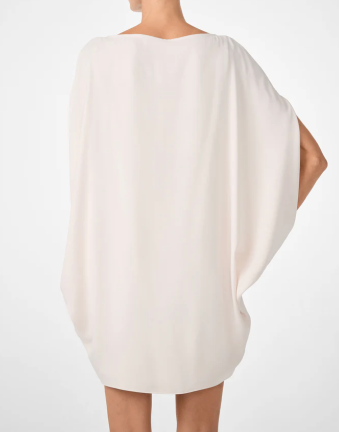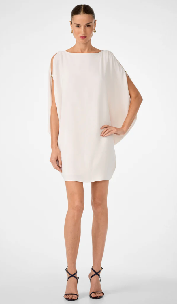 This mini dress does double duty as a chic cover-up for pool days and a romantic date dress for warm nights. This split-sleeve dress features a boatneck and lightweight, drapey fabric, making it the perfect summer escape dress.