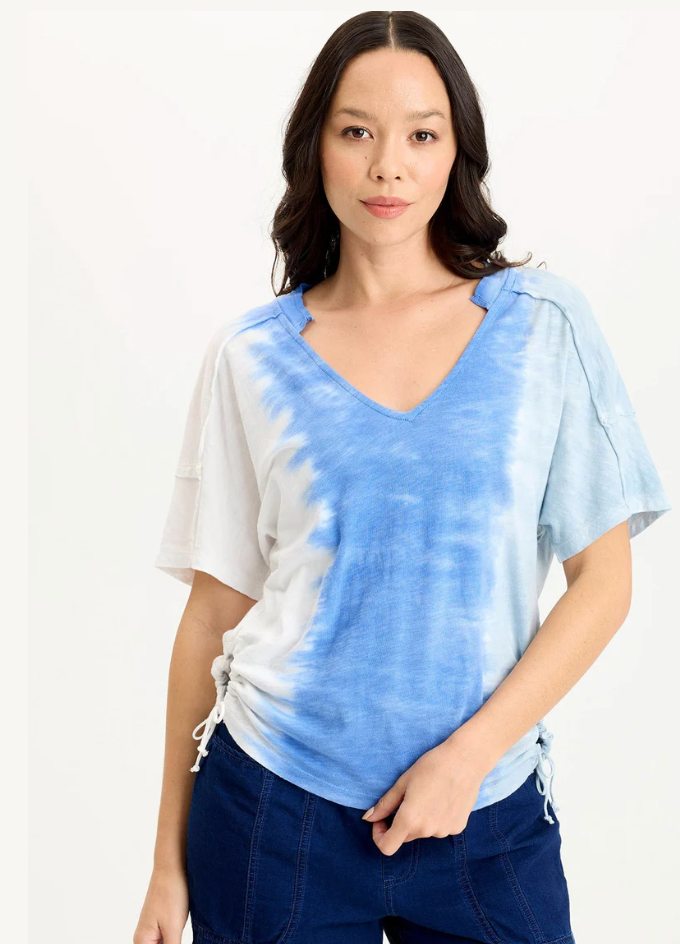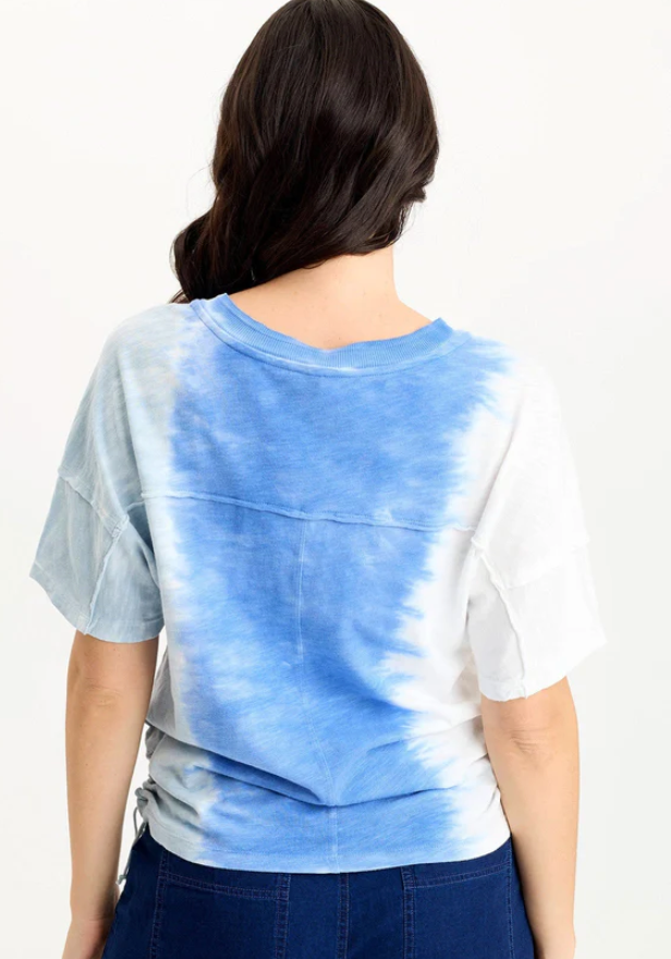 • Color Description: Mid-Tone Blue, Light Blue and White Vertical Sectional Tie-Dye